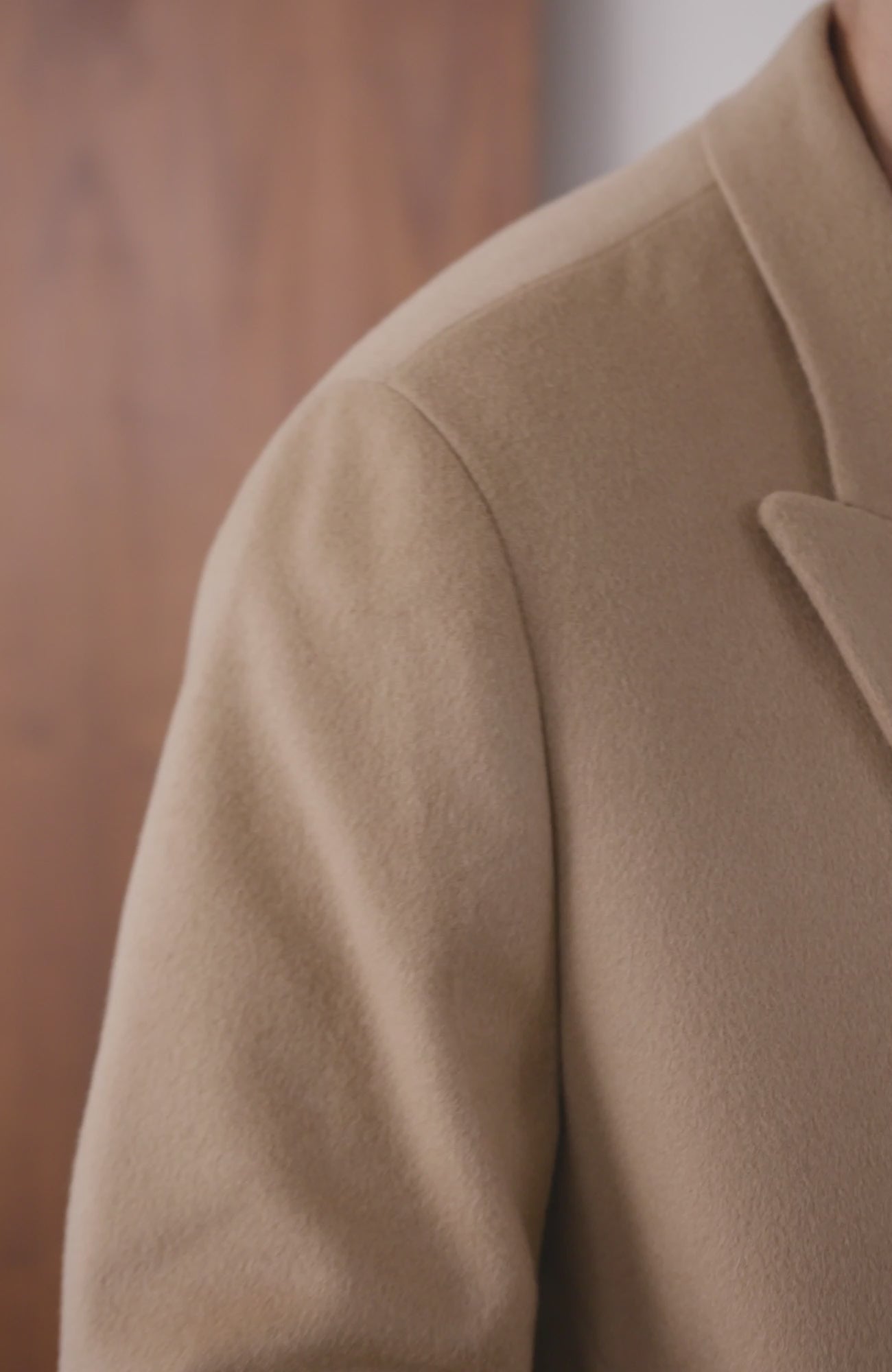 Manteau long classique à double boutonnage et coupe ample avec col en pointe. Mélange laine et cachemire, entièrement doublé avec poches à rabat. Ce pardessus a été conçu avec une coupe surdimensionné. Pour une coupe décontractée moins généreuse, choisissez une taille plus petite.